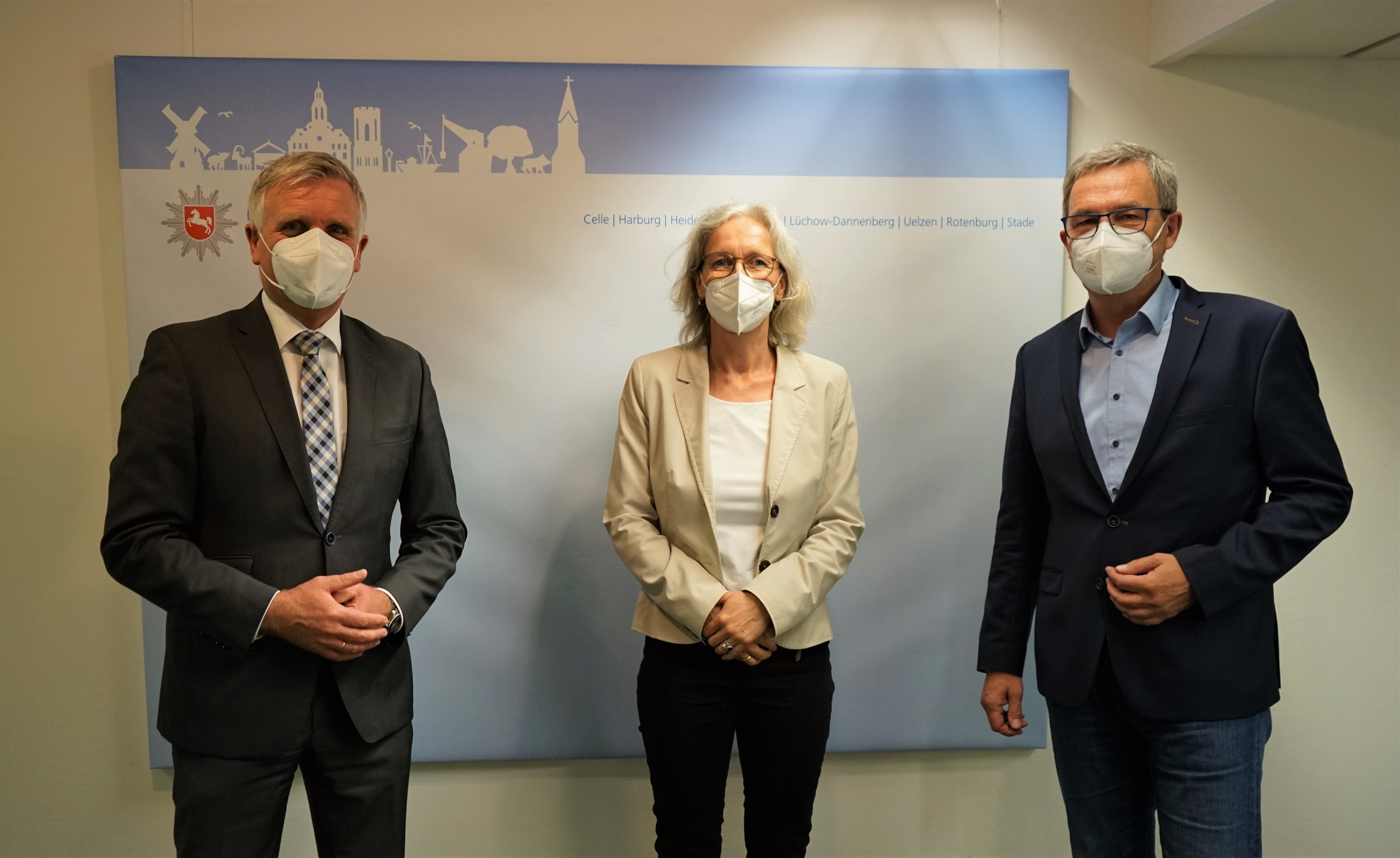 Am heutigen Tag begrüßten Polizeipräsident Thomas Ring und Polizeivizepräsident Hans-Jürgen Felgentreu in einem kleinen Rahmen offiziell die neue Abteilungsleiterin 2 der Polizeidirektion Lüneburg Inga Ritters-Timm. Bereits seit dem 31. März 2022 hat die Oberregierungsrätin, welche seit 17 Jahren mit kurzzeitigen Unterbrechungen für die Polizeidirektion Lüneburg tätig ist, ihre Amtsgeschäfte übernommen. Die Volljuristin hat nach einem Studium in den USA in Hamburg Rechtswissenschaften studiert. 1998 trat sie in die damalige Bezirksregierung Lüneburg ein und war dort u.a. Dezernentin in den Bereichen Schulrecht, Baurecht und Personal. Es folgten eine Abordnung in der Kommunalstation zum Bürgermeister der Gemeinde Seevetal sowie im weiteren Verlauf zum Landgericht Lüneburg als Richterin kraft Auftrags. 2005 begann sie ihre Tätigkeit für die Polizei Niedersachsen mit Übernahme des Dienstpostens Dezernentin "Recht" im Dezernat 22 der PD Lüneburg, ab 2016 als Dezernatsleiterin. In dieser Zeit nahm sie an verschiedenen landes- und bundesweiten Arbeitsgruppen sowie Projekten teil und war vorübergehend im Niedersächsischen Ministerium für Inneres und Sport tätig, bevor sie 2021 als Referentin an das Bundesministerium der Justiz in das Referat IVB1 "Polizeirecht; Recht der Nachrichtendienste; Ausweis- und Melderecht" abgeordnet wurde.