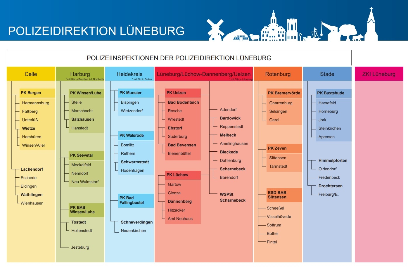 Zusätzlich gibt es eine Zentrale Kriminalinspektion mit Sitz in Lüneburg, die im Wesentlichen für Verfahren der Schwerkriminalität und der organisierten Kriminalität im gesamten Direktionsbereich zuständig ist.