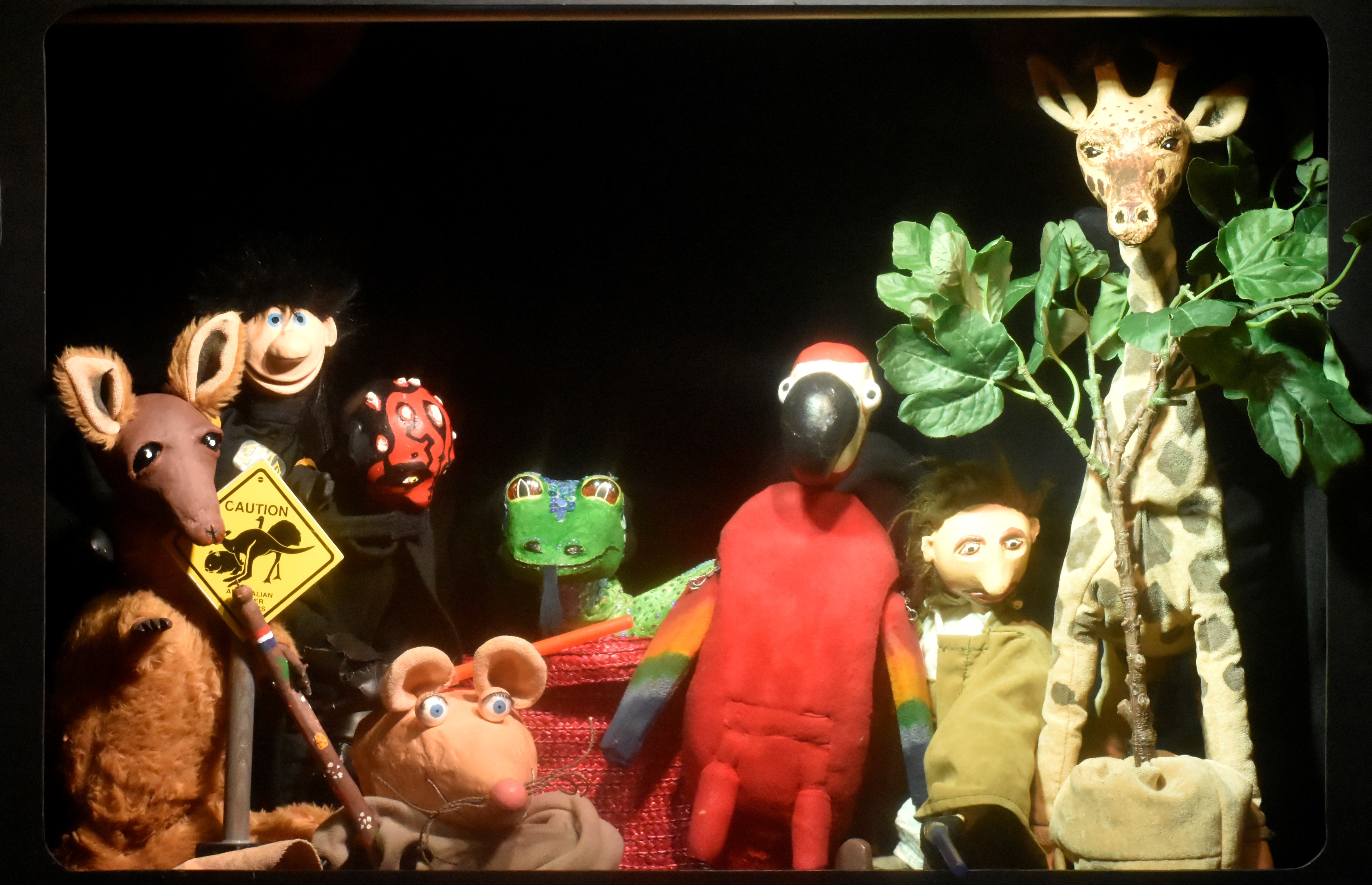 Er begegnet z.B. dem Didgeridoo spielenden Känguru Arnie aus Australien oder einem plappernden Papageien aus dem südamerikanischen Regenwald.